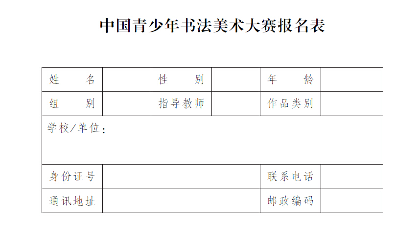 年龄在45 岁以下(1969 年9 月1 日以后出生) 的书法和美术爱好者均可参赛。大赛分为儿童组(12 岁以下) 、少年组(13-17 岁) 、青年组(18-45 岁) 和青年院校组( 就读书法、美术