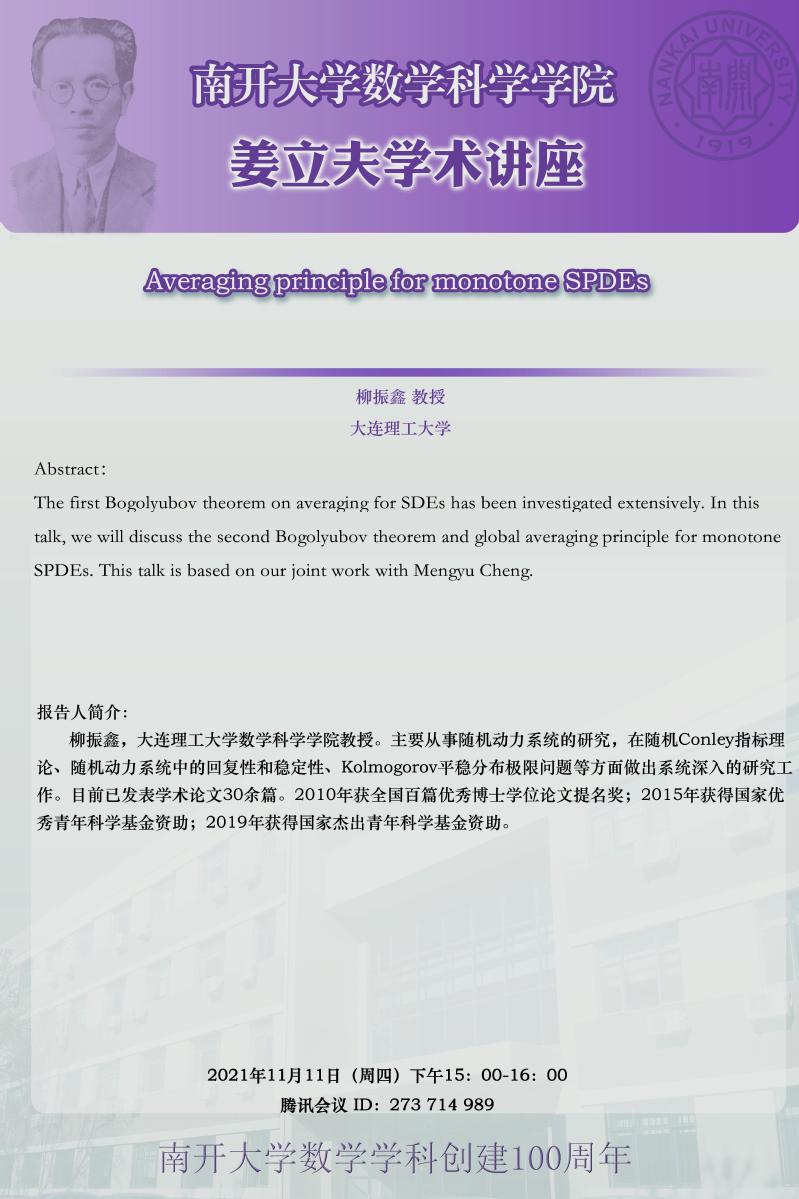 【姜立夫学术讲座】veraging principle for monotone SPDEs