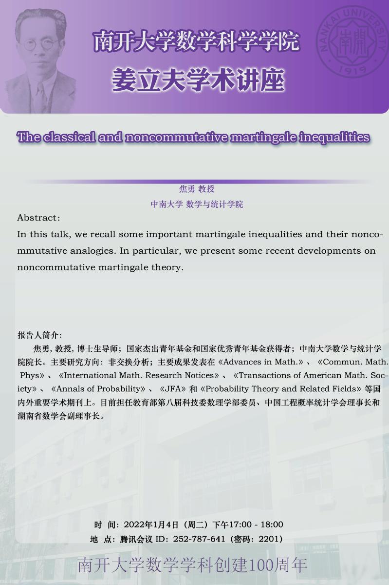 【姜立夫学术讲座】The Classical and noncommutative martingale inequalities
