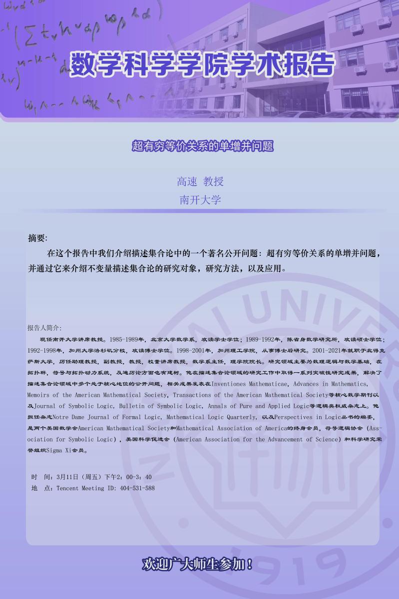 【数学前沿问题选讲】超有穷等价关系的单增并问题