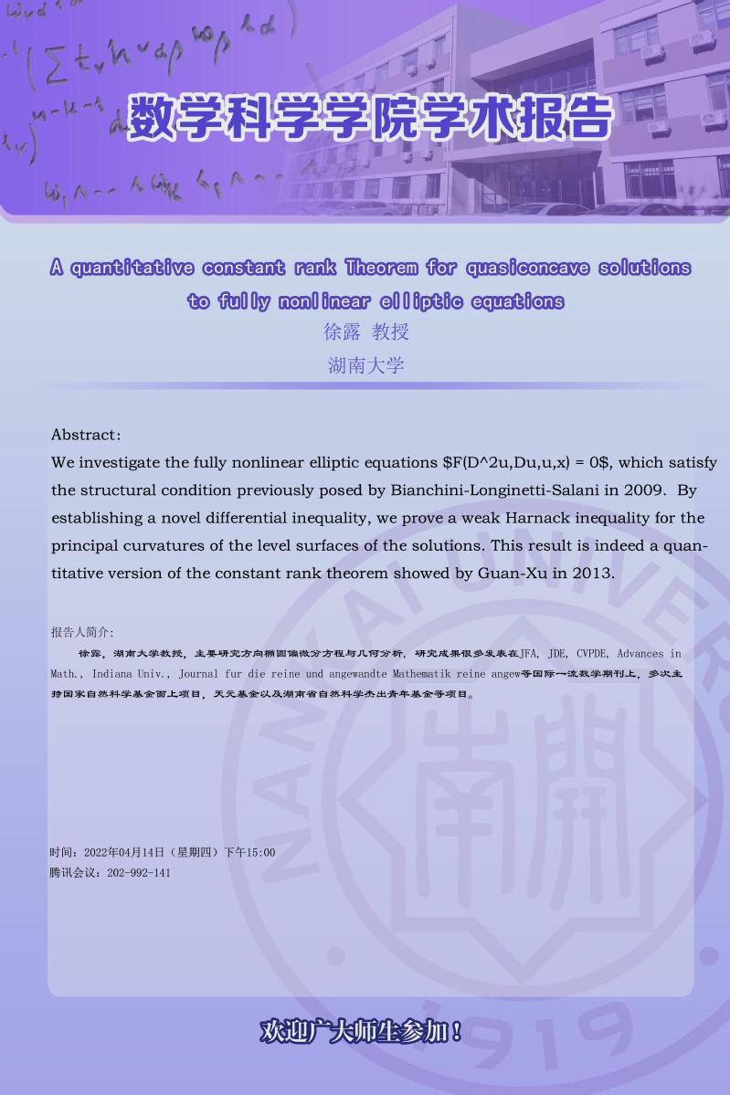 A quantitative constant rank Theorem for quasiconcave solutions to fully nonlinear elliptic equations