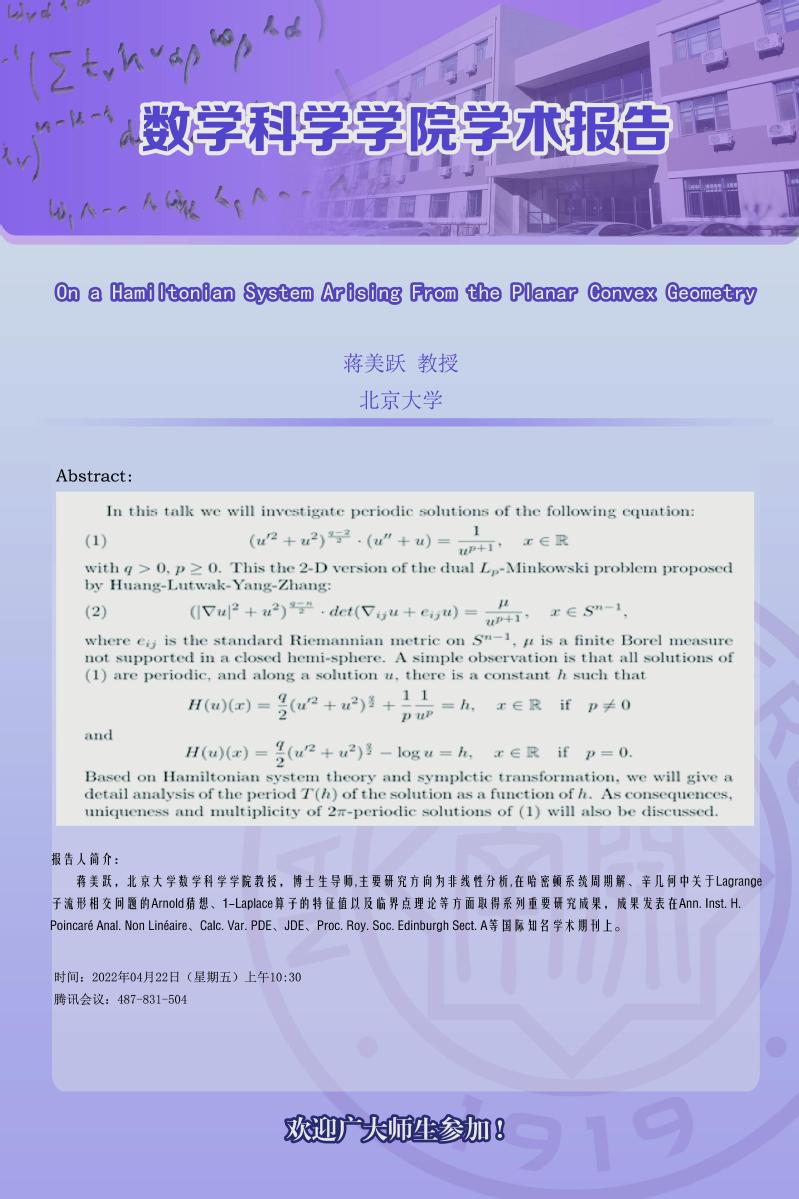On a Hamiltonian System Arising From the Planar Convex Geometry