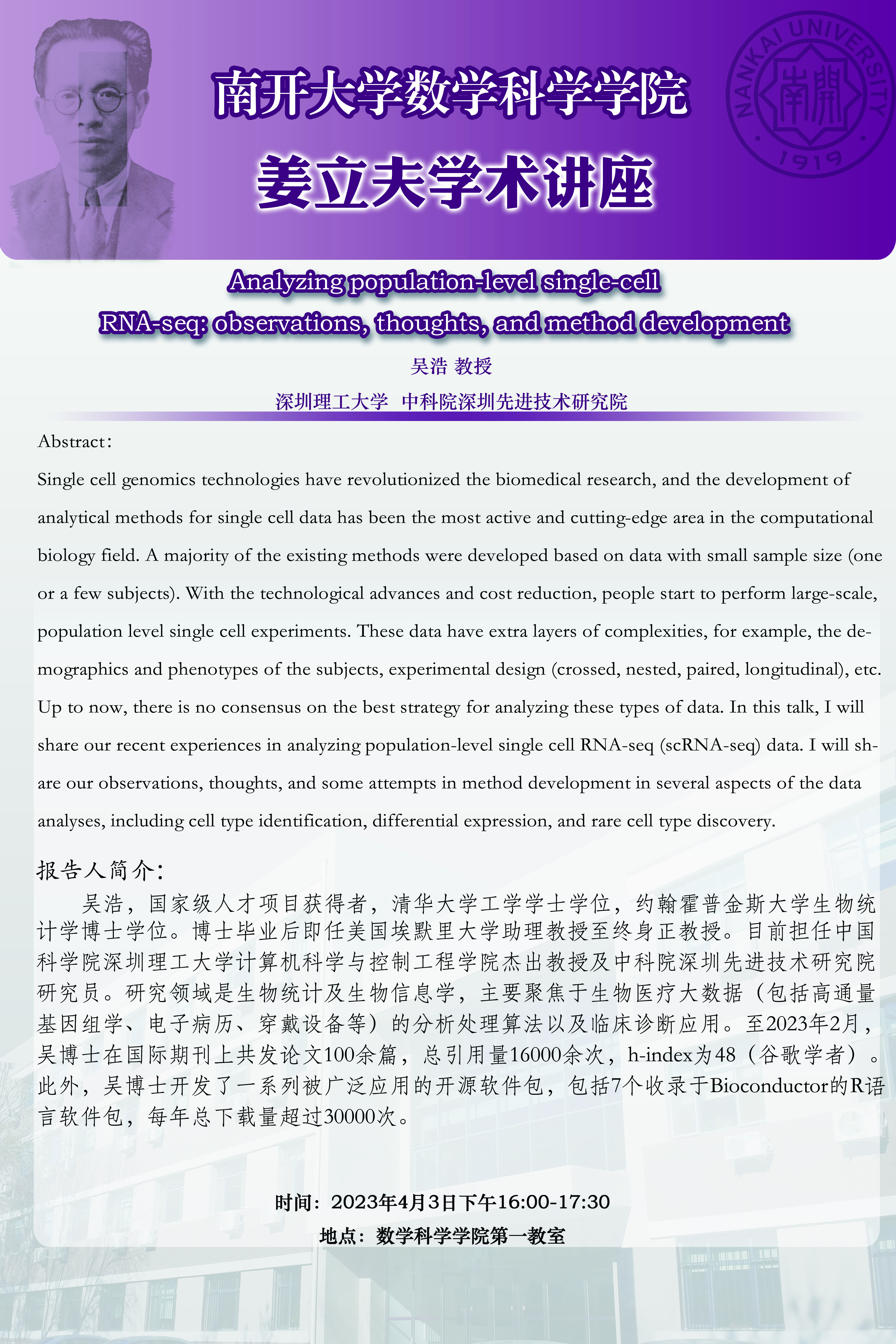 【姜立夫学术讲座】Analyzing population-level single-cell RNA-seq: observations, thoughts, and method development