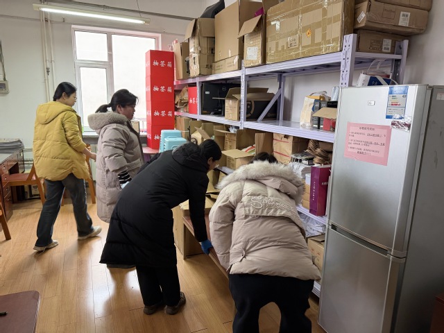 活动中,平日里在案头忙碌的老师们暂时放下手头繁忙的工作,热情高涨地投入劳动。现场分工井然有序,大家各司其职:有的老师俯身清扫公共办公区的灰尘与杂物;有的则细心擦拭公共设施,不放过任何一个角落;还有几位老师组成“攻坚小队”,专门负责清理储物区域,他们将闲置多年的教具、资料分类收纳整理,并将废弃物品统一清理。即便额角渗出汗水,老师们的动作依旧一丝不苟,整个劳动场面热火朝天。