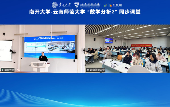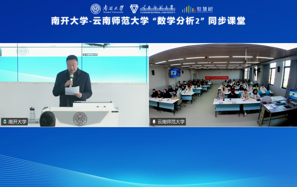 为深入贯彻国家教育数字化战略,扎实推进教育部“慕课西行 2.0” 行动计划,促进优质高等教育资源跨区域开放共享,3 月 19 日上午,南开大学与云南师范大学《数学分析Ⅱ》智慧课程同步课堂启动仪式,在八里台校区 B206 沉浸式教室顺利举行。